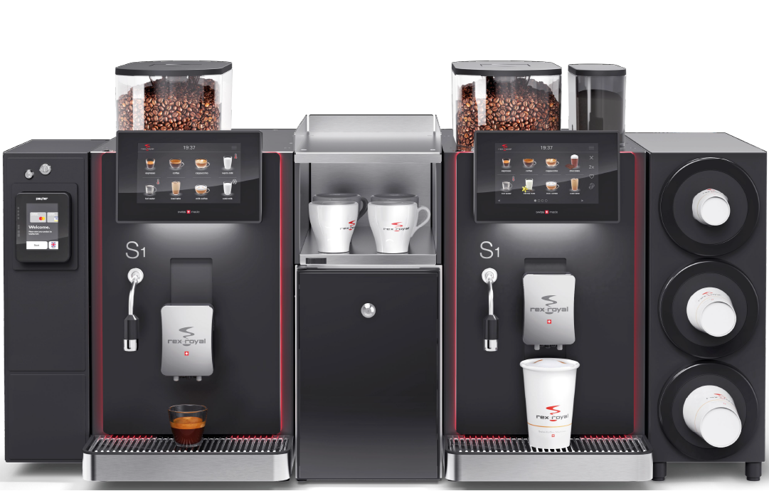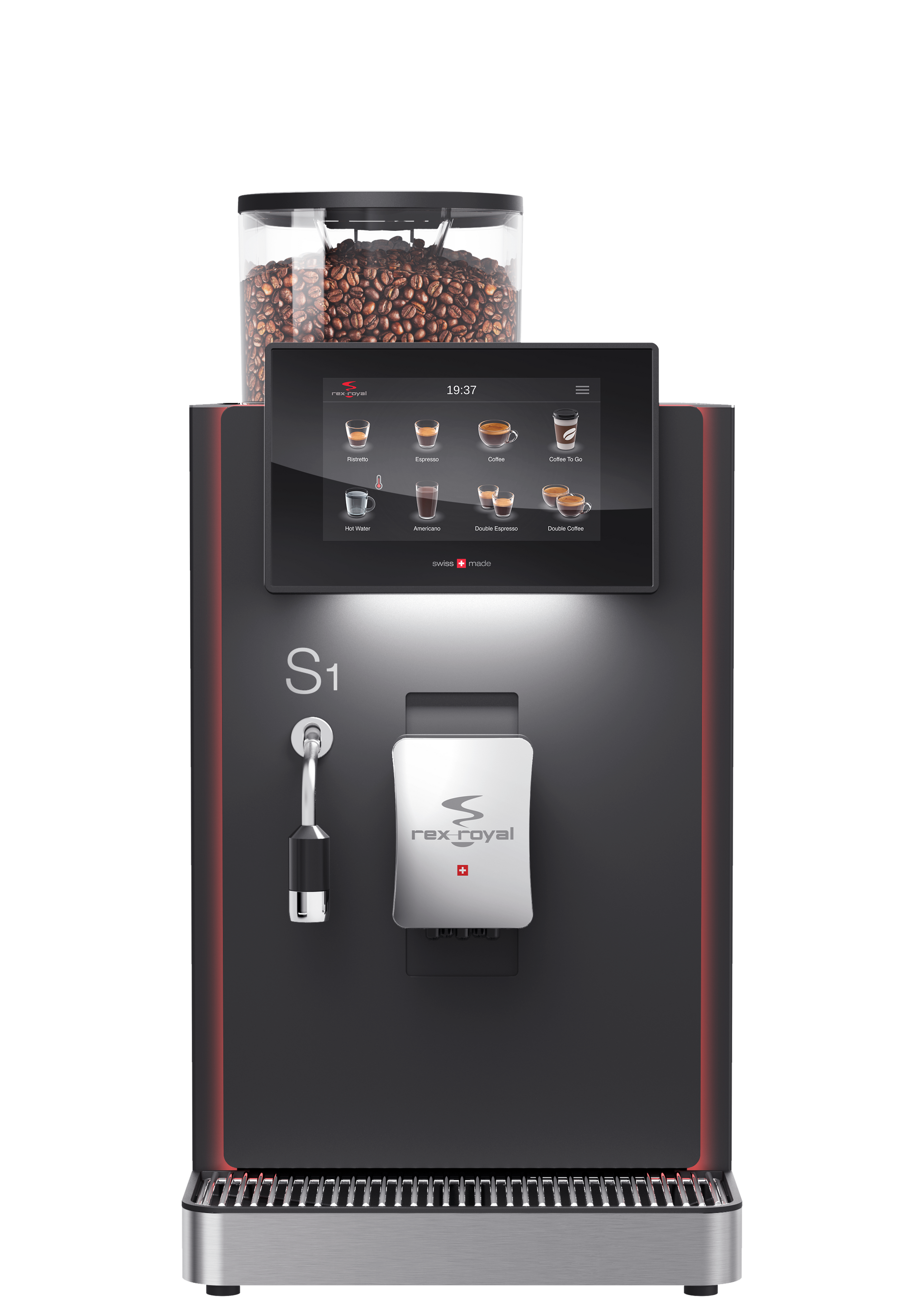 The Rex-Royal S1 is the compact and high-quality fully automatic coffee machine for professional applications. It delivers first-class beverage creations and is ideal for offices and co-working spaces. The S1 has a robust and durable metal brewing unit.